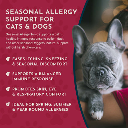 Yes, Seasonal Allergy is safe for daily, long-term use — especially during allergy-prone times of the year. Some pet parents use it year-round in regions with prolonged allergy seasons, while others follow a seasonal approach: starting at the first signs of allergies and continuing until symptoms subside. The gentle, non-sedating herbs in this formula support the immune system and help reduce allergy symptoms without causing stress to the body.