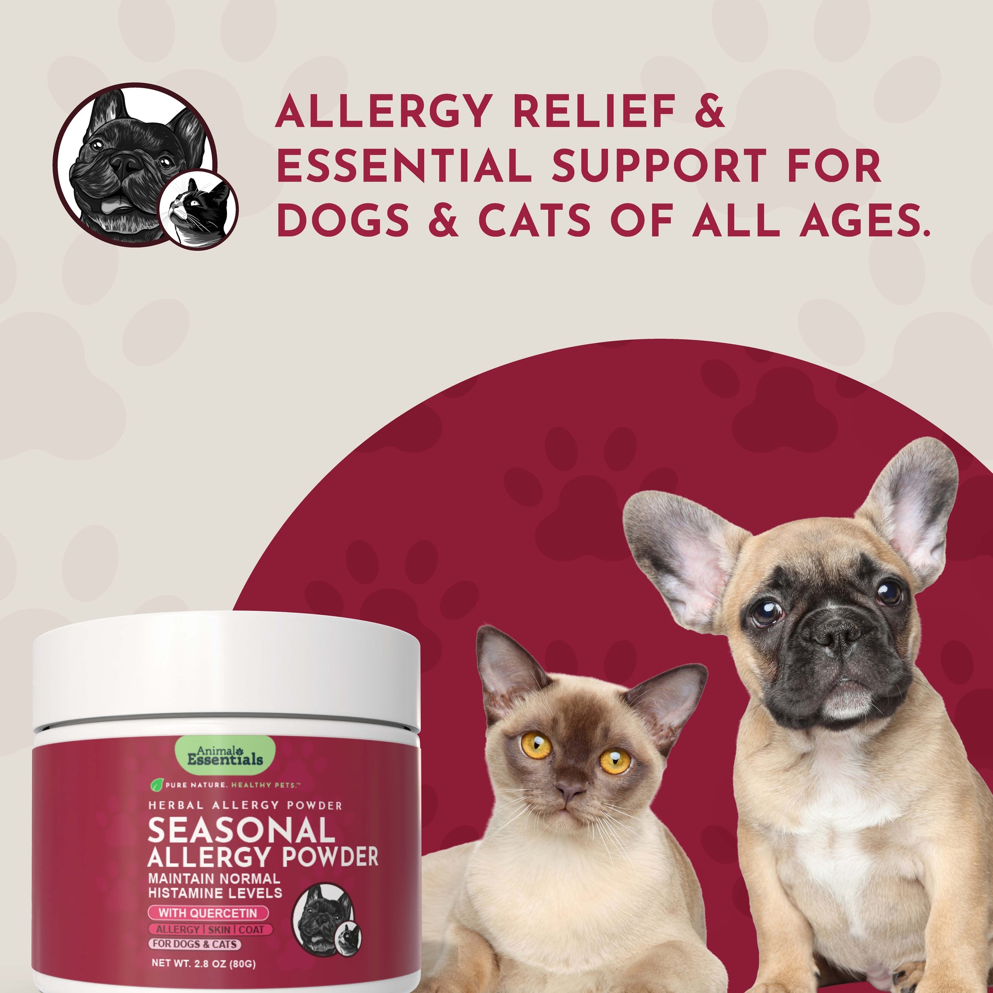 Animal Essentials Seasonal Allergy Powder is a powerful blend of natural antihistamines and anti-inflammatory compounds that provide a strong and natural defense against seasonal allergies. This enhanced formula combines certified organic herbs — Nettle Leaf, Burdock Root, Licorice Root and Eyebright — with Quercetin and Bromelain, to effectively support the immune system, reduce inflammation, and provide relief from allergy symptoms.