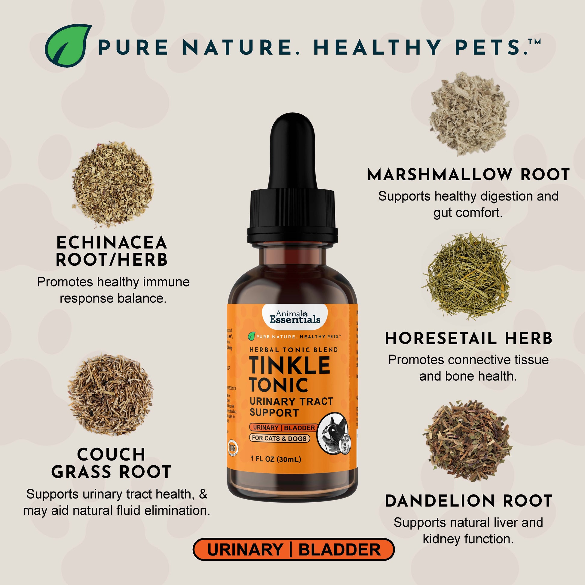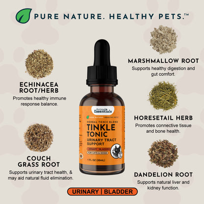 Tinkle Tonic is designed to support a wide range of urinary concerns in dogs and cats, including: